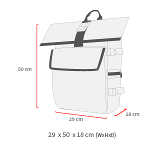 Backpack featuring a roll-top closure. Boasting functionality, durability, and design that demonstrate the best performance in riding as well as daily use. The opening/closing mouth of the roll top prevents intrusion of rain, sand, snow, and is also excellent in security.